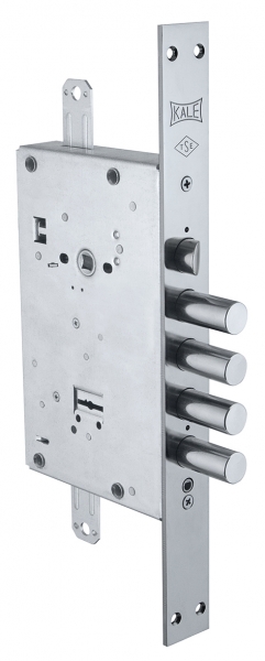Kale 472 LR SMART LINE Замок врезной сувальдный перекодируемый для металлических дверей, с верхней реверсивной защелкой, оснащен подшипником под ручку для плавного хода. Цвет лицевой планки-никель.